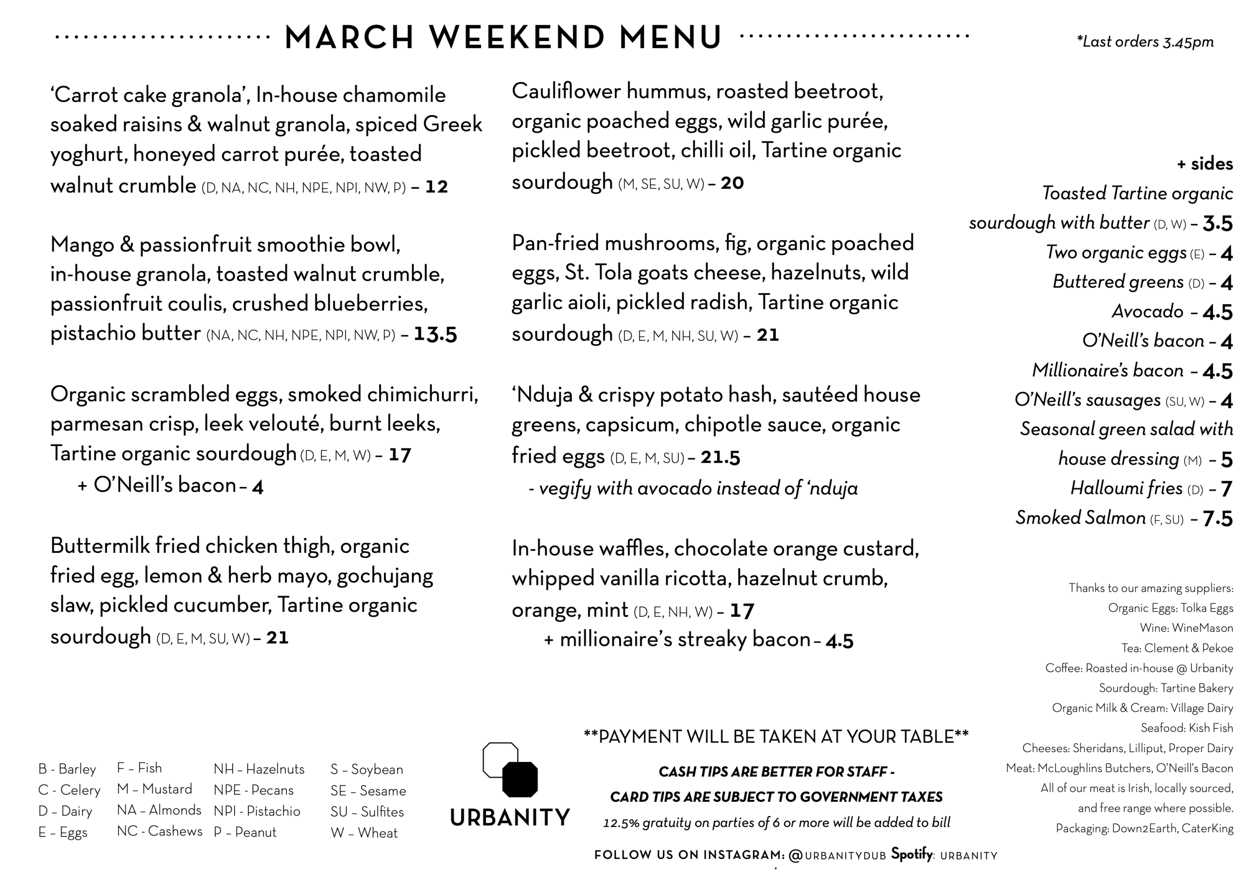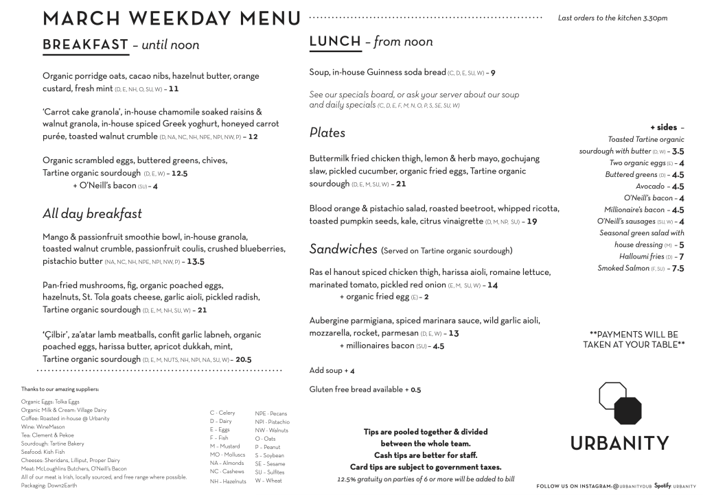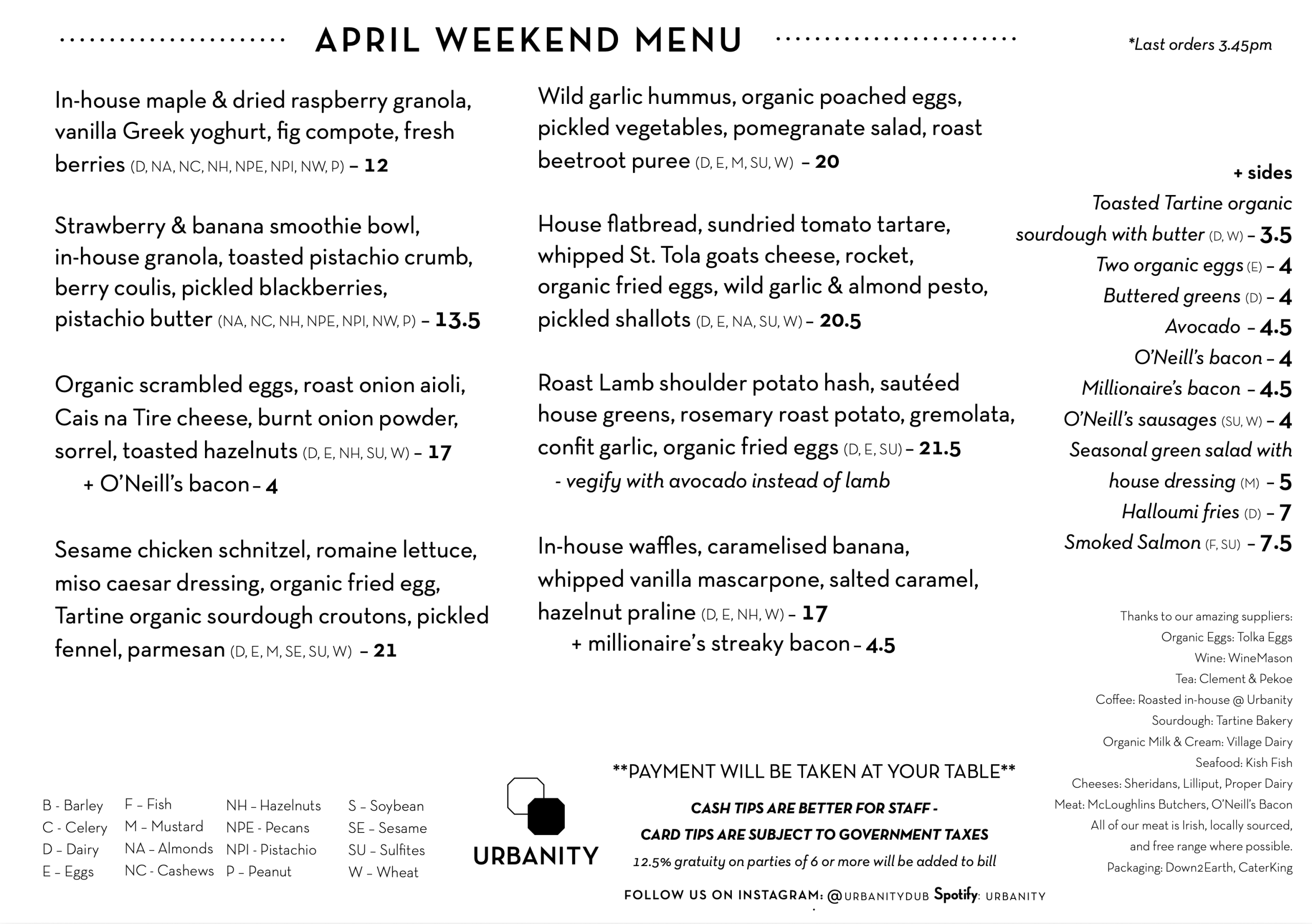 Spiced lamb, ras el hanout fried egg, wild garlic labneh, pistachio za’atar, pickled chilli, Tartine organic sourdough(C, D, E, NPI, W) – 18